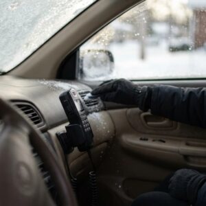 You can keep spare, dry mouthpieces in a sealed container, use insulated gloves that still let you grip the handset, and consider windshield or engine covers that reduce overall cabin chill. Just avoid anything that applies direct heat to the device or blocks its vents, and always route cords so they are protected from boots, ice scrapers, and cargo.